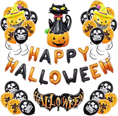 Amazon Co Jp Houpwyet ハロウィン 飾り付けセット 風船 ハロウィン 飾り バルーン ガーランド 黒ネコ カボチャ デコレーション 装飾 イベント 仮装 学園祭 お祝い 文化祭 雰囲気 おしゃれ 装飾セット ホーム キッチン